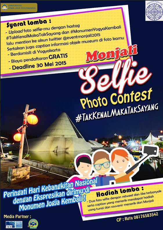 kelompok 8/Pricious PR Prodi Ilmu Komunikasi Fakultas Ilmu Sosial dan Ilmu Politik Universitas Atma Jaya Jogjakarta bekerjasama dengan Monumen Yogya Kembali, RRI Pro 2 dan Atma Jaya Radio mengadakan lomba foto selfie